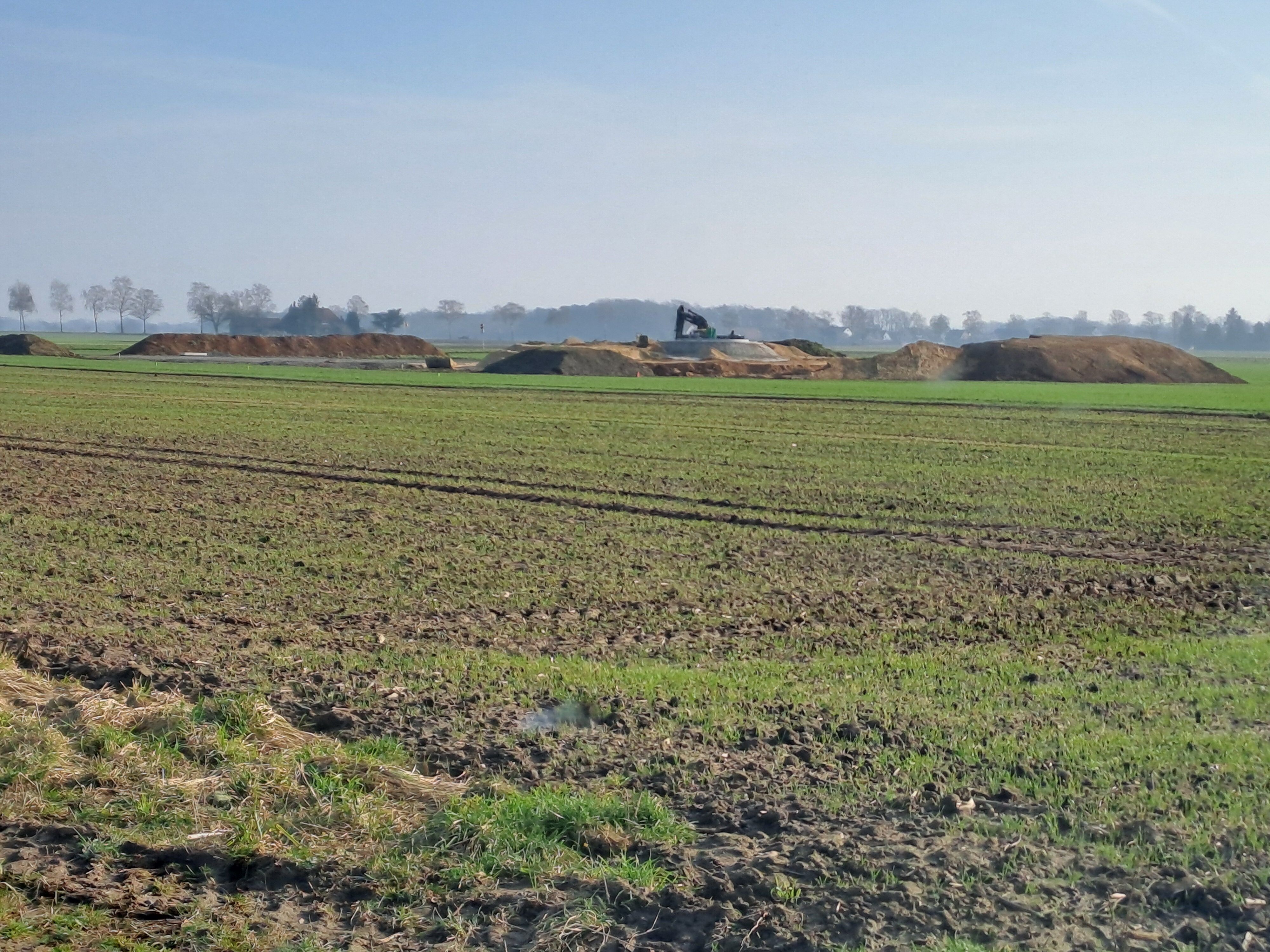 - Die fertigen Fundamente werden mit Sand und Mutterboden abgedeckt